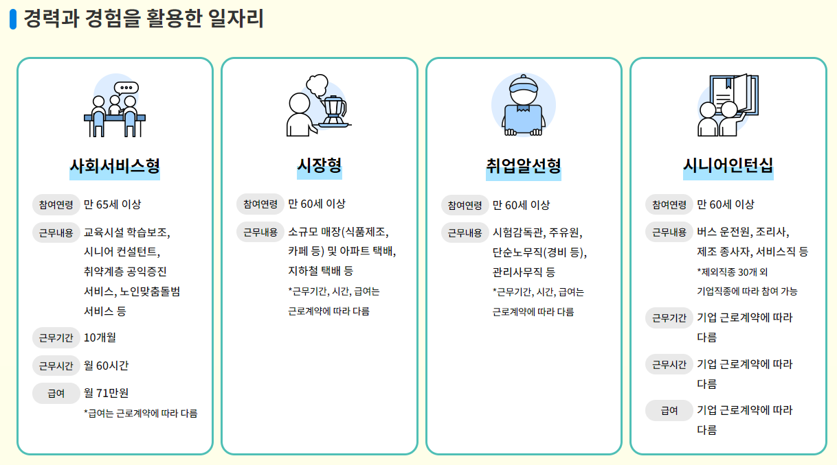 노인일자리 여기 홈페이지 일자리유형
